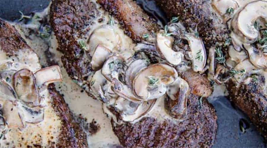 10. Serve the steak with the mushroom sauce and mashed potatoes. Enjoy!